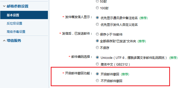 本功能默认提供给全部网易企业邮箱用户,如果企业不需要此功能,可由超级管理员admin在管理后台的“邮箱参数设置”中的“基本设置”中,关闭此功能,如下图示意。